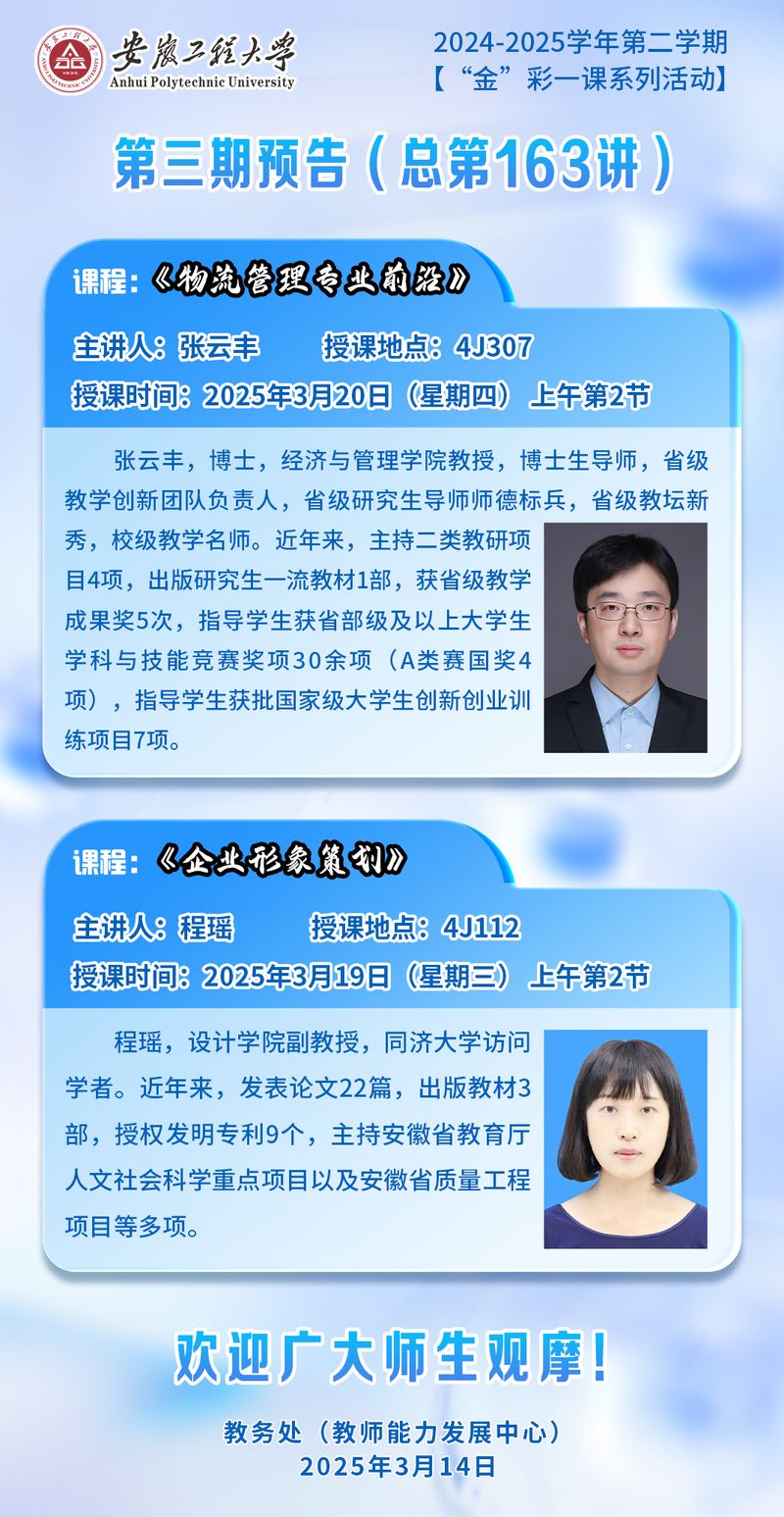 2024-2025学年第二学期【“金”彩一课系列活动】第三期预告(总第163讲)