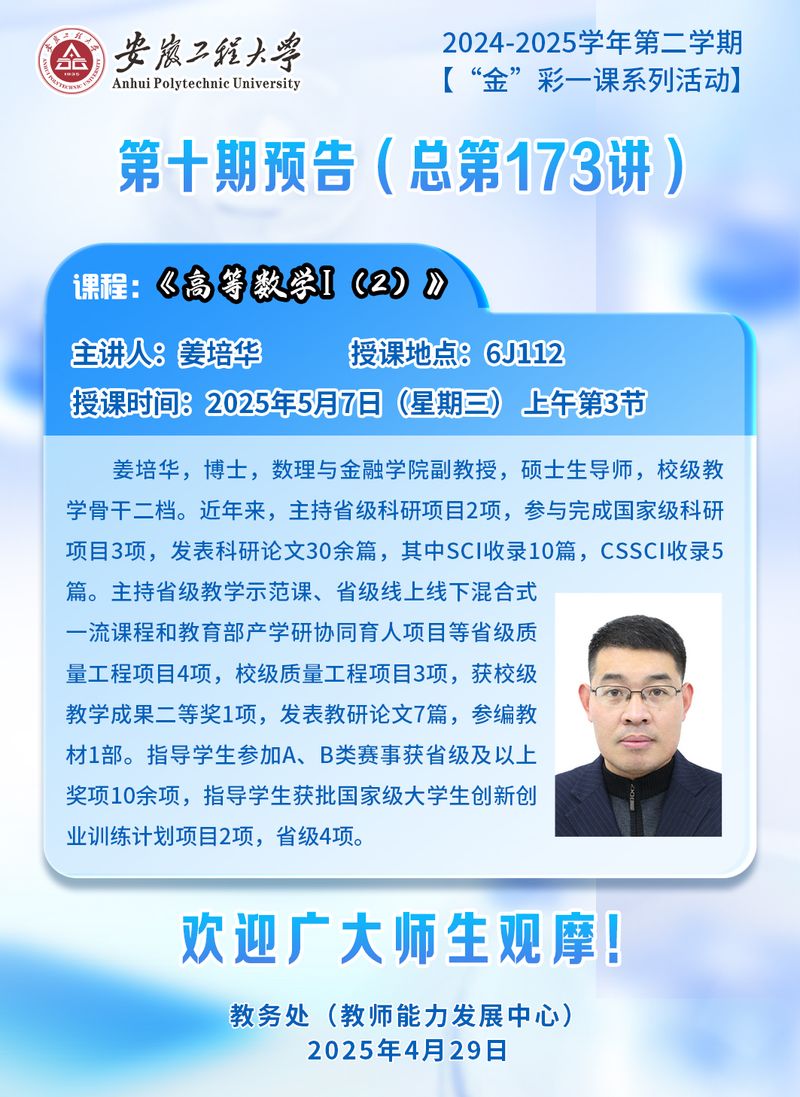 2024-2025学年第二学期【“金”彩一课系列活动】第十期预告(总第173讲)