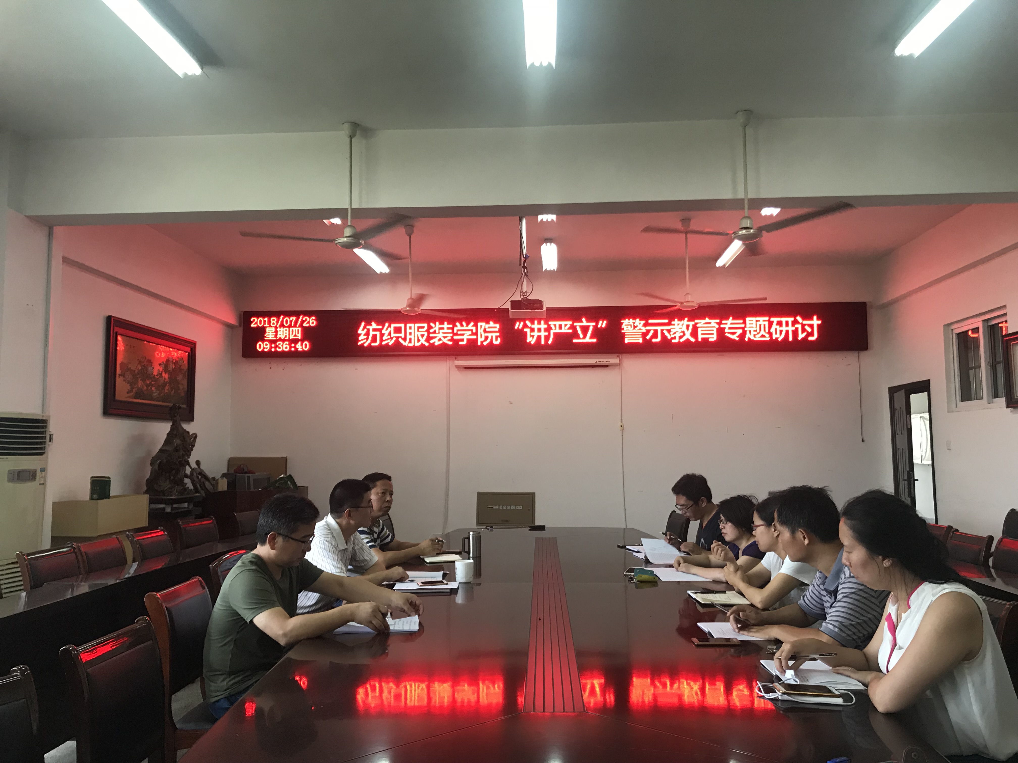 7月26日上午,纺织服装学院“讲忠诚、严纪律、立政德”专题警示教育集中研讨会在学院会议室召开。会议由院党委书记纪天新主持。纺织服装学院中心组成员参加会议。