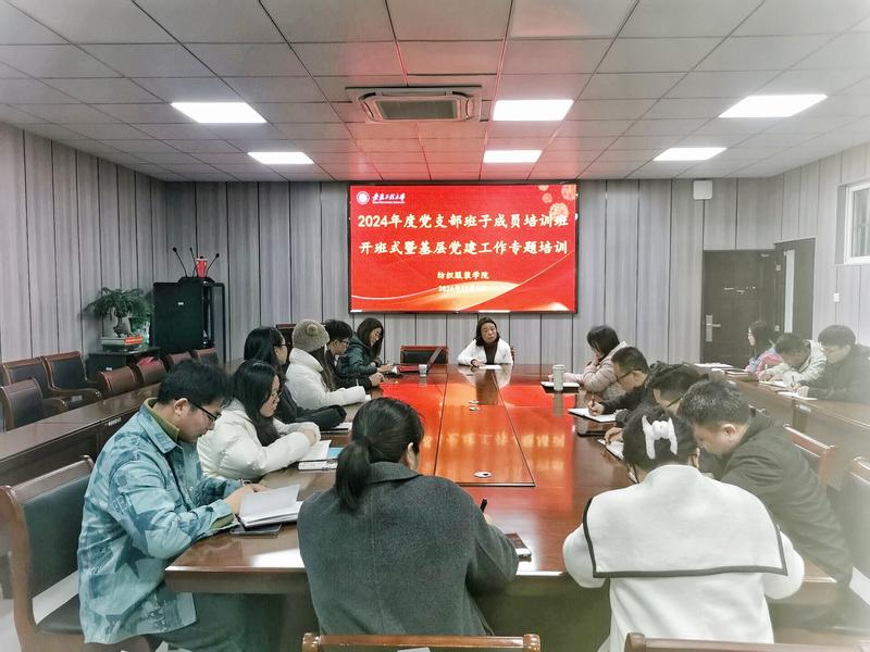 为深入学习贯彻习近平新时代中国特色社会主义思想和党的二十大精神,认真落实新时代党的建设总要求,124日,纺织服装学院在D413会议室举行2024年度党支部班子成员培训班开班式暨基层党建工作专题培训,院党委书记徐珍珍、组织员、各党支部班子成员共同参加。校党委组织部副部长朱文明到会作专题培训。会议由徐珍珍主持。