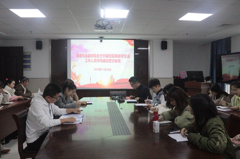 11月26日中午,数理与金融学院学生于图书馆1612召开作风建设警示会议,院党委、团委老师出席,全体学生会成员参与此次会议。本次会议由严昊主持。